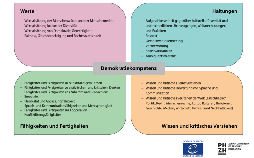 … für das friedliche Zusammenleben in Vielfalt einer zusehends diverser werdenden Gesellschaft notwendiger denn je sind und zukünftig noch mehr werden („core life skills“ der WHO; und der „Referenzrahmen des Europarats“: „Kompetenzen für eine demokratische Kultur“).