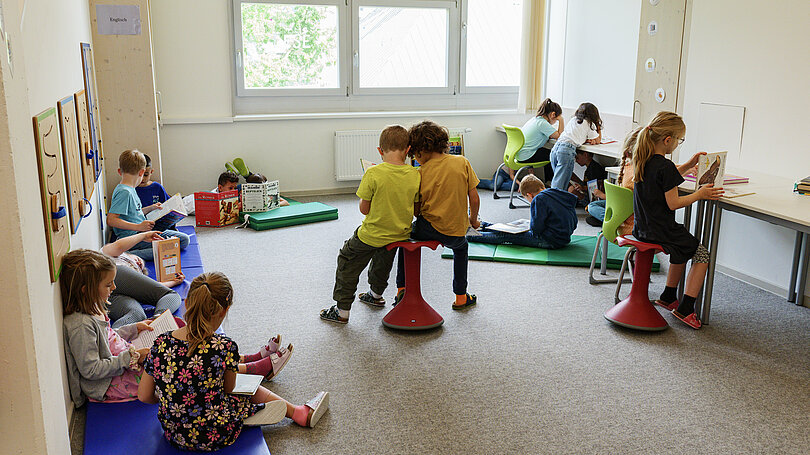 Wir haben jetzt genug Platz für alle möglichen Lernformen. Ob in Gruppen, in Einzelarbeit oder in der beliebten Leseecke mit ihren bequemen Matten – hier können sich die Kinder zurückziehen und in Ruhe arbeiten. Die neuen offenen Räumlichkeiten unterstützen auch unser Projekt des Atelierunterrichts. Dieser ist mittlerweile fest im Schulprofil verankert. In diesem offenen Lernformat haben die Kinder die Möglichkeit, eigenständig und projektorientiert an unterschiedlichen Themen zu arbeiten – von naturwissenschaftlichen Experimenten bis hin zu kreativen Gestaltungen. Der Atelierunterricht fördert nicht nur die Selbstständigkeit, sondern auch die soziale Kompetenz durch gemeinsames Arbeiten in altersgemischten Gruppen.